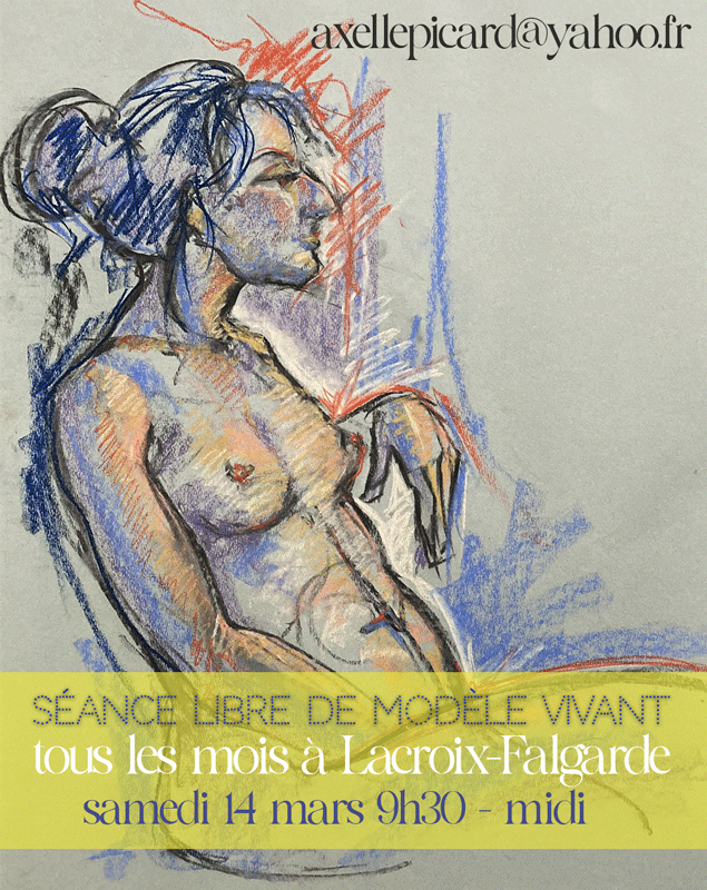 Prochaines séances libres mensuelles de modèle vivant à Lacroix-Falgarde les samedis 20/09 et 11/10 de 9h30 à midi